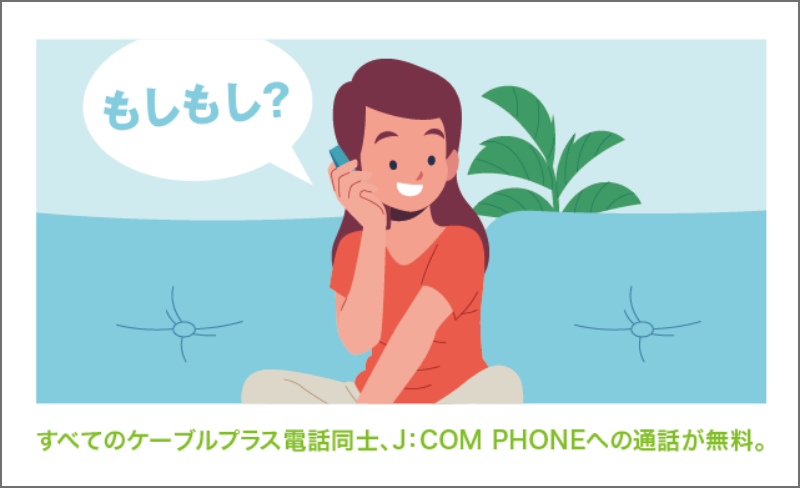 ※1ケーブルプラス電話。J:COM PHONEプラスの総計です。※2J:COM PHONEからの電話の場合、先方は通話料がかかる場合があります。 *2013年4月時点