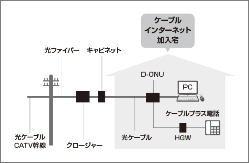 キャビネットから電話を利用する部屋まで、光ケーブルを露出配線で設置し、D-ONUと電話機能付ホームゲートウェイを設置します。