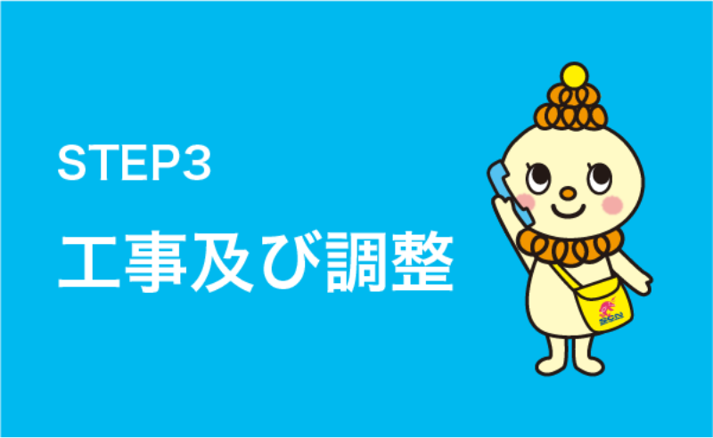オンライン申込みフォームにご記入いただくか、または電話でお申込みください。担当者がご都合のよい日時にご自宅に伺い、工事費用、料金のお見積もりをいたします(お見積もりは無料です)。お急ぎの方は直接ご来社ください。