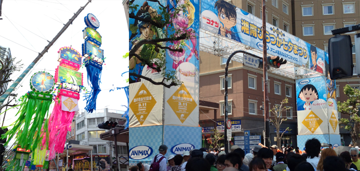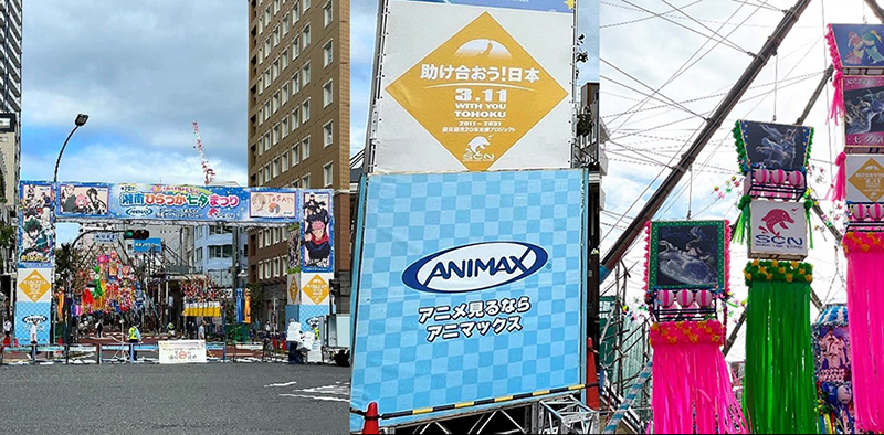 ◆ 2011年7月8日(金)〜10日(日)「第61回湘南ひらつか七夕まつり」にて アニマックス七夕メインゲート及びSCN七夕飾りにおいて「助け合おう!日本」の ロゴの掲出を行いました。