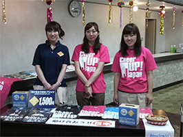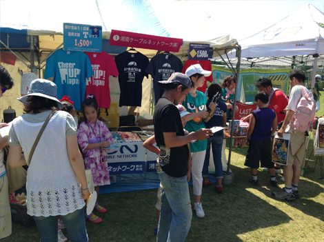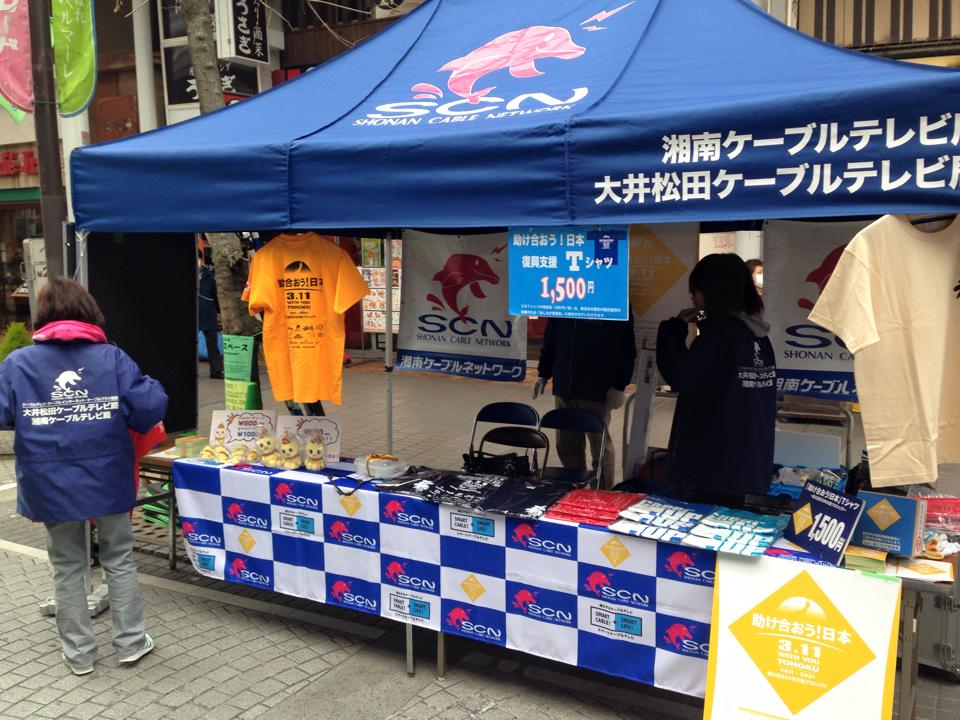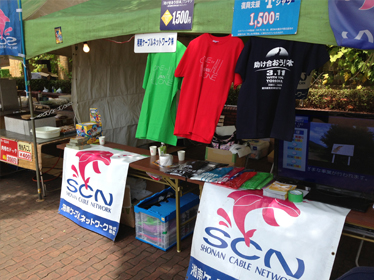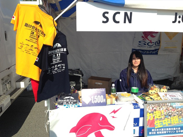 また10日に平塚市民センターで行った「助け合おう!日本 SCNファミリーフェス」においてステッカーとパンフレットの配布活動及びチャリティTシャツ・東北物産品販売と石巻市への応援メッセージの寄せ書きを行いました。