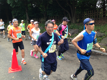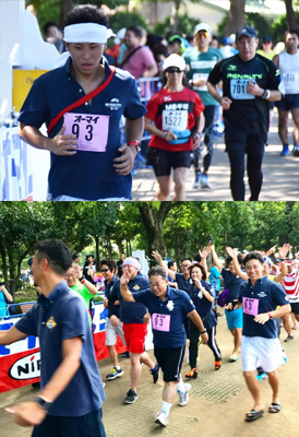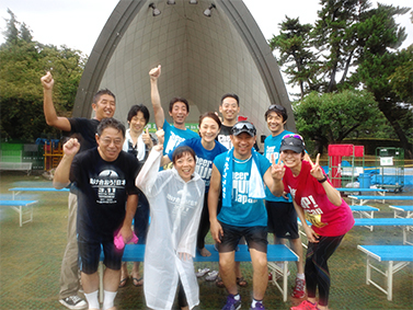 「助け合おう!日本」のチャリティTシャツを着用して走り活動のPRを行いました。