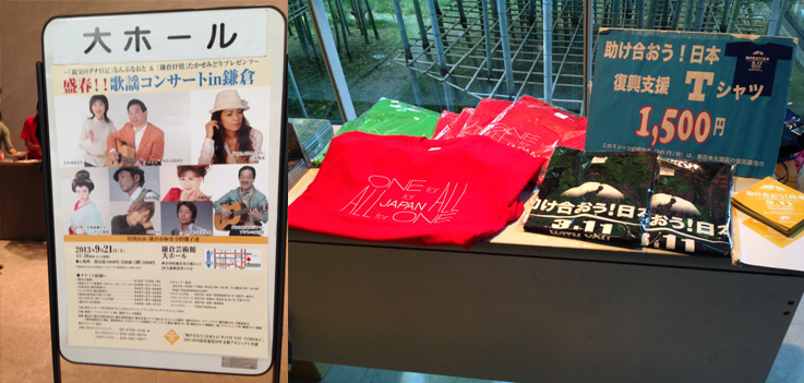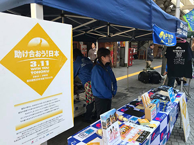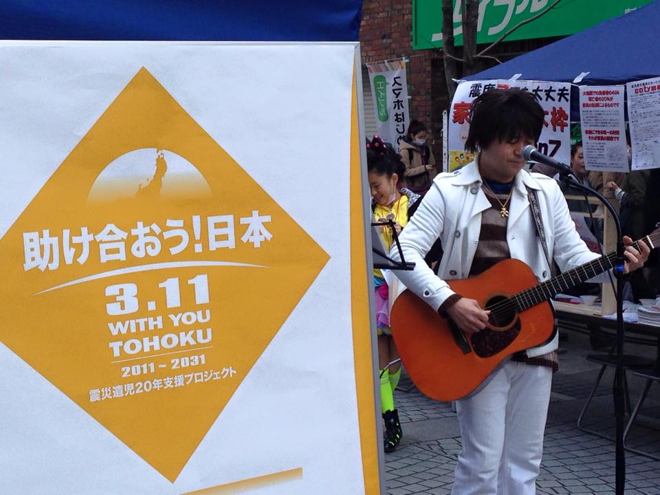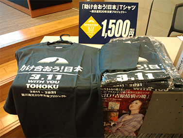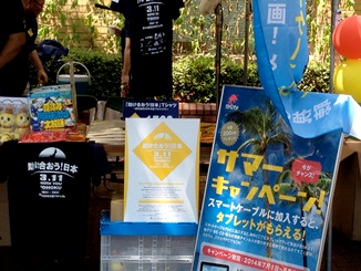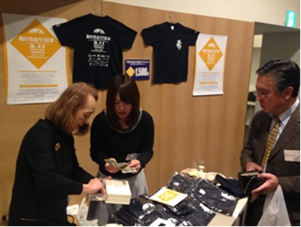篠塚正典氏が代表を務める『幸福(しあわせ)の黄色いバンダナの会』が3月12日(月)に開催した「忘れない! 3.11」のイベント会場にて、「助け合おう!日本」のステッカーとパンフレットの配布活動及びチャリティTシャツの販売を行いました。