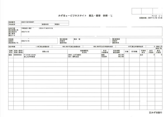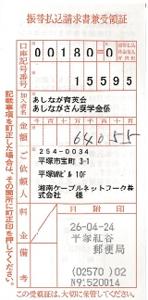 あしなが育英会様へ下記のとおり振込を行いましたので、ご報告いたします。