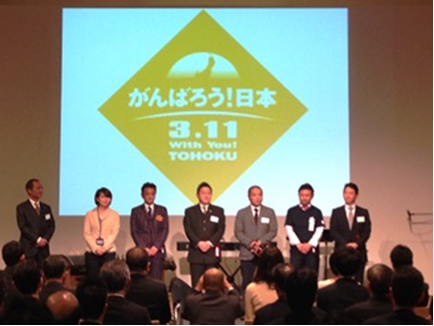 当日会場にて大震災から1年 〜鎮魂と希望〜 にてTシャツの販売と募金活動を行いました。ステージ上にて活動協力の御願いもいたしました。