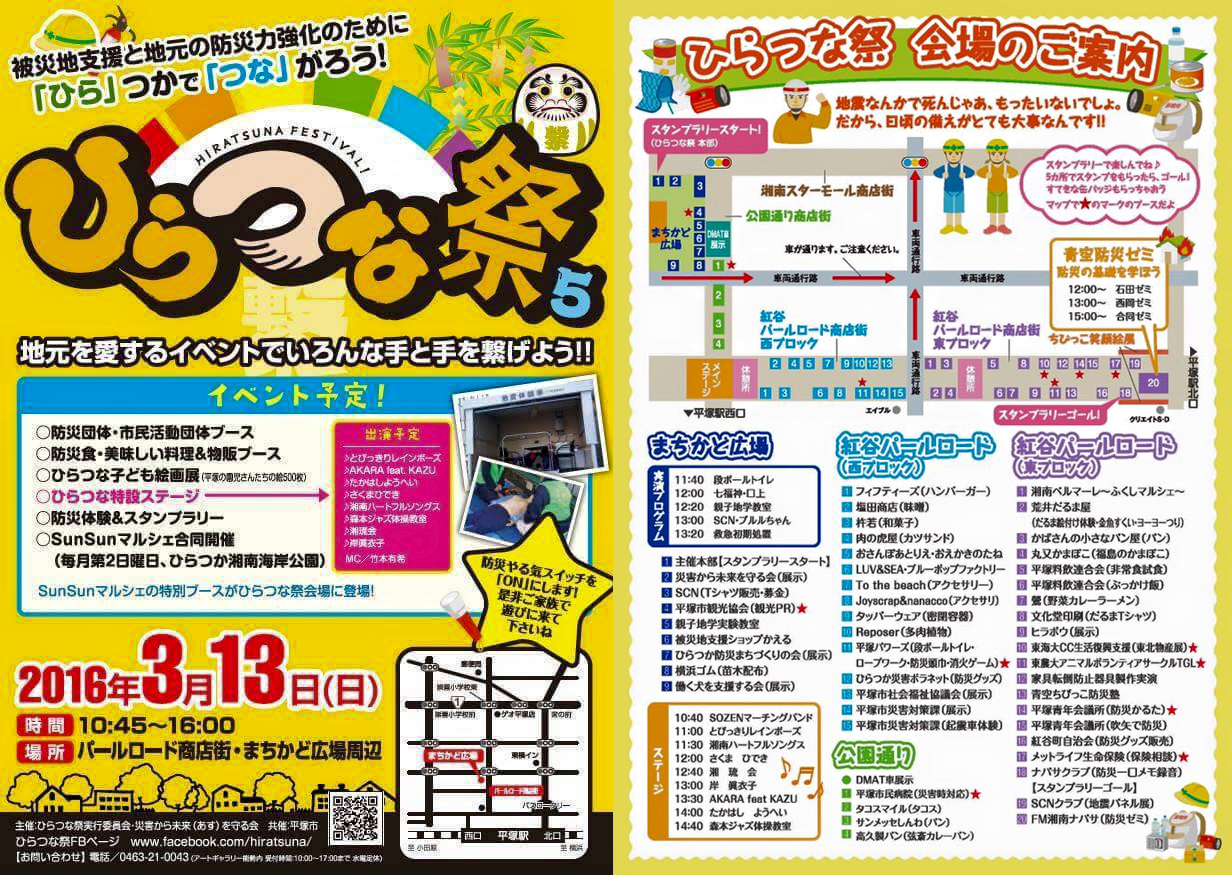 3月6日(日)被災地支援と防災強化イベント〈ひらつな祭11〉が平塚市中心商店街で開催され、当プロジェクトでは〈助け合おう!日本〉チャリティグッズの販売と募金活動を行いました。ご協力頂いた皆様ありがとうございました。