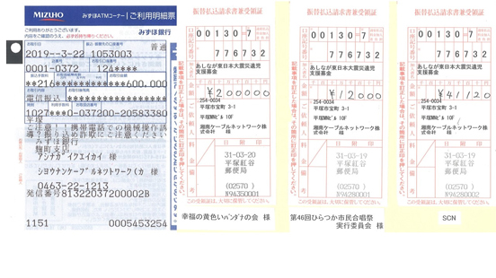 ・湘南ケーブルネットワーク(株) 2019年度上期分寄付 600.000円