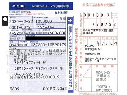 ・湘南ケーブルネットワーク(株) 2019年度下期分寄付 600.000円