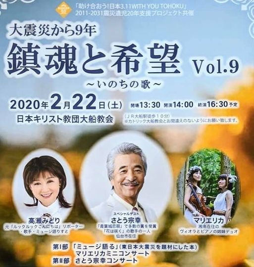 今年2月22日(土)に開催を予定していた助け合おう!日本3.11 WITH YOU TOHOKU 2011-2031震災遺児20年支援プロジェクト共催 高瀬みどりチャリティコンサート「鎮魂と希望vol.9?いのちの歌?」は残念ながら新型コロナウイルス 感染症の収束の目処が立たない事から中止とさせて頂きました。楽しみにされていた皆さま、誠に申し訳ございません。チケットをお求め頂いた皆様からお預かりしたチケット代を義援金に使って下さいとお申し出いただいた皆様からの寄付に高瀬みどり事務所からの寄付を加えた20万円を、昨日以下の4箇所に送金させて頂きましたのでご報告致します。