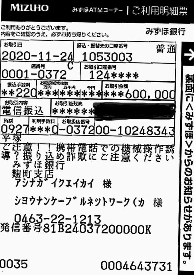 ・湘南ケーブルネットワーク株式会社社び取締役募金 45.827円