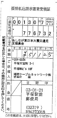 ・湘南ケーブルネットワーク株式会社社員募金分 25,873円