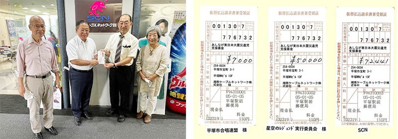 ひらつか市民合唱祭実行委員会様より震災遺児支援の寄付をお預かり致しました。