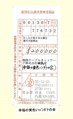 ・幸福の黄色いバンダナの会様寄付 200,000円