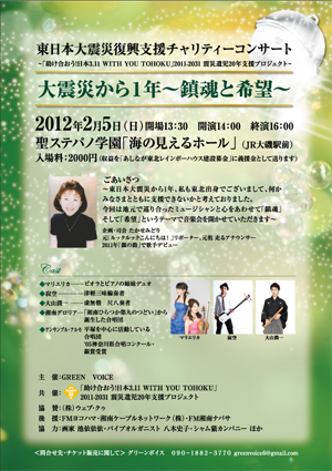 東日本大震災復興支援チャリティーコンサートのお知らせ