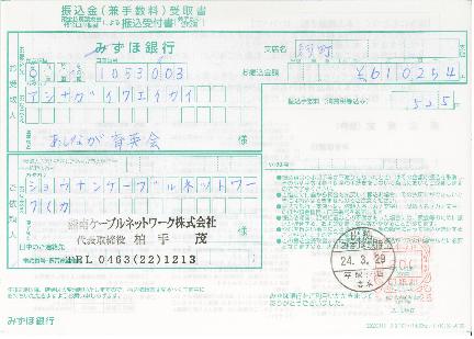 2012年3月28日 弊社の2011年度下期分の寄付金をあしなが育英会に送金いたしました。