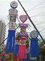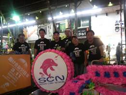 2011年7月31日〜8月1日の石巻市川開き祭りにSCNと花水ラオシャン本店の七夕飾りを、平塚青年会議所のメンバー及びボランティアの皆様とともに掲出いたしました。「助け合おう!日本 SCNファミリーフェス」で皆様にいただいたメッセージもお届けいたしました。