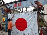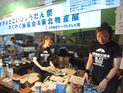 2011年8月7日(日)「大井町よさこいひょうたん祭り」にて「助け合おう!日本」のステッカーとパンフレットの配布活動及びチャリティTシャツ・東北物産品の販売を行いました。
