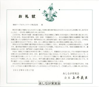 日本ケーブルテレビ事業協同組合組合員有志様からの寄付金